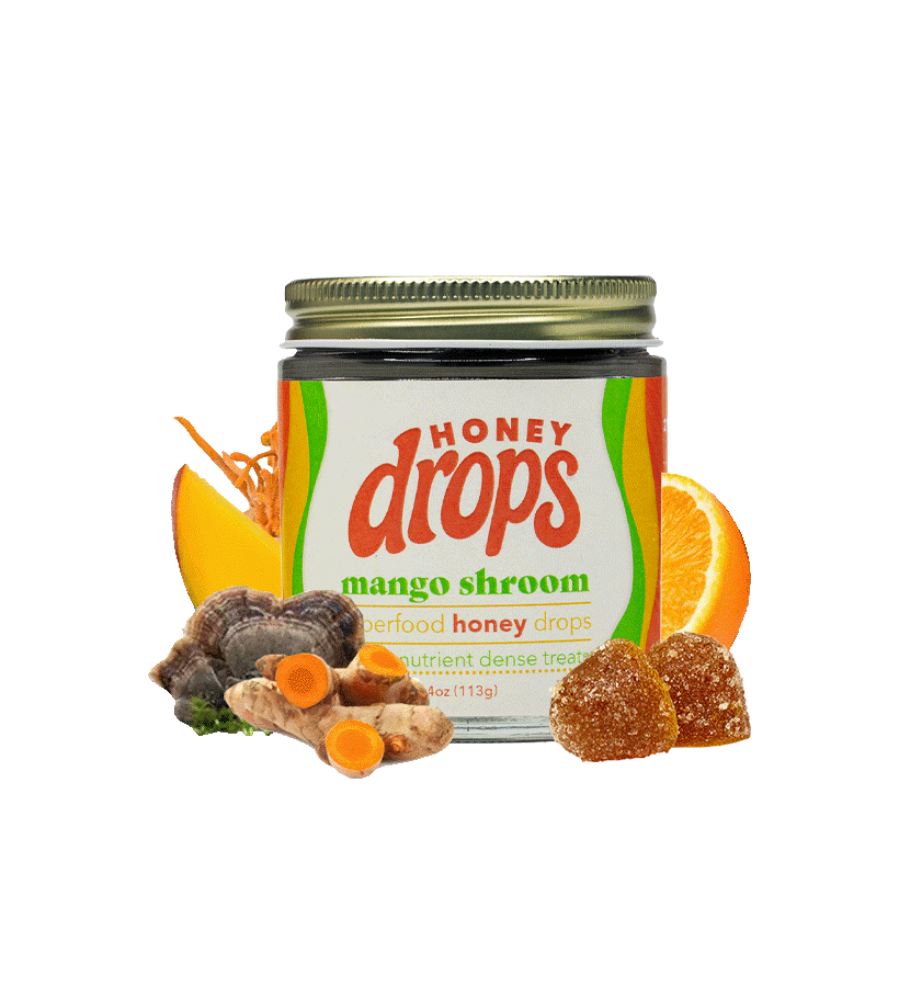 Honey Drops are made with simple ingredients: organic honey, nutrient-dense whole foods, powerful vitamins & minerals, and mushrooms. Yes -- mushrooms.