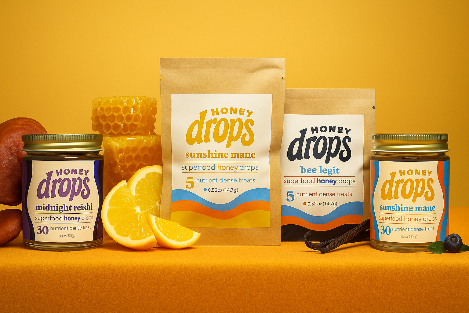 USDA Organic Honey is our #1 ingredient in every honey drop. We then add superfoods, fruits, mushrooms, and more!
